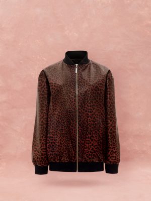 LEOPARD VEGAN-LEATHER BOMBER JACKET WINE