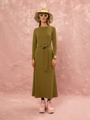 KNITTED RIBBED DRESS – LIME