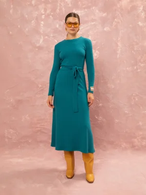 KNITTED RIBBED DRESS – PETROL
