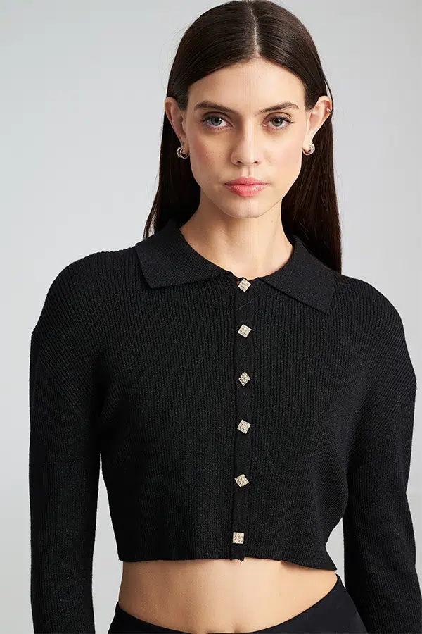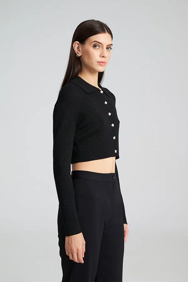• Κουμπιά-κόσμημα: Διακοσμητικά τετράγωνα κουμπιά που προσθέτουν πολυτελή πινελιά.