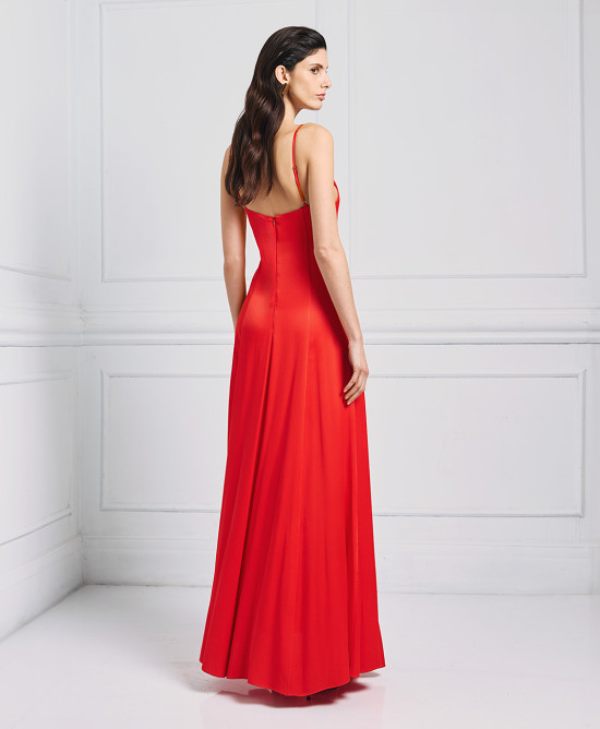 Σατέν, μάξι φόρεμα με V λαιμόκοψη. Διαθέτει ρυθμιζόμενες λεπτές τιράντες και τσέπες στο πλάι. Επιλέξτε το για στιλάτα occasion looks.