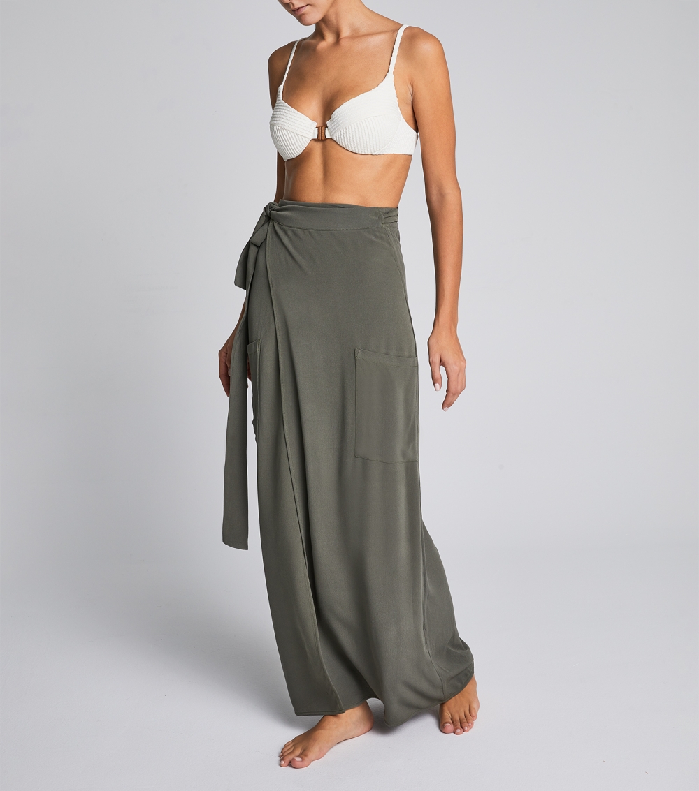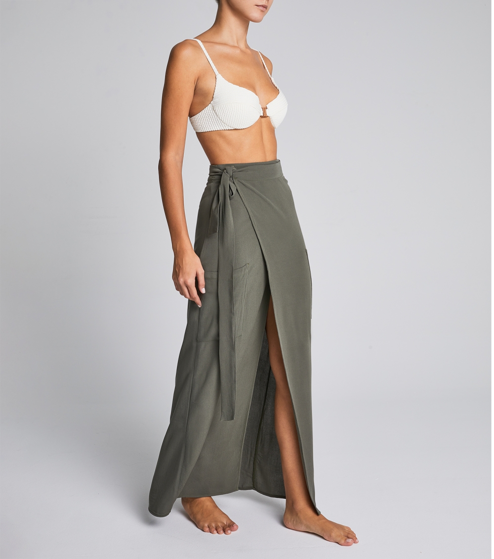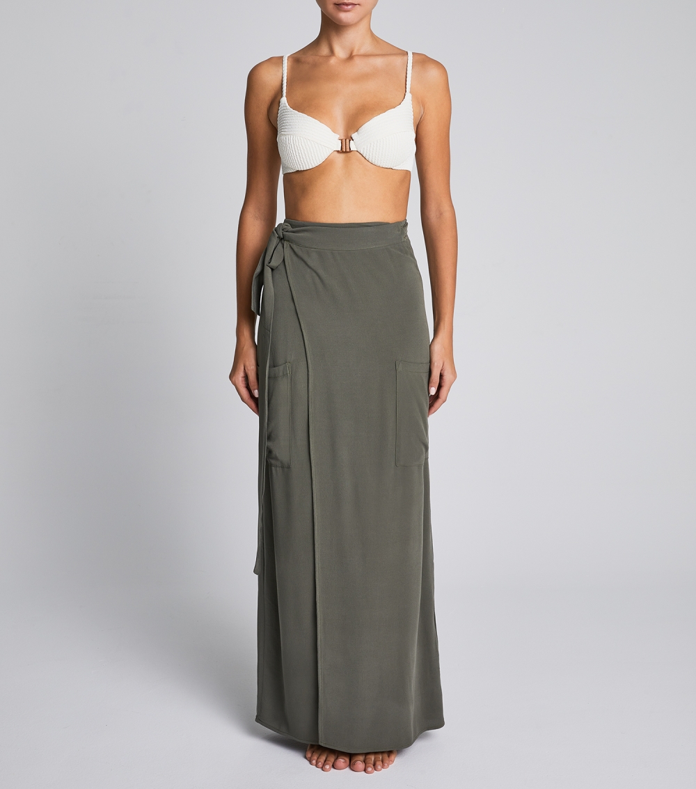 Long wrap skirt that ties at the waist for a customized fit and falls to a floaty maxi hem.