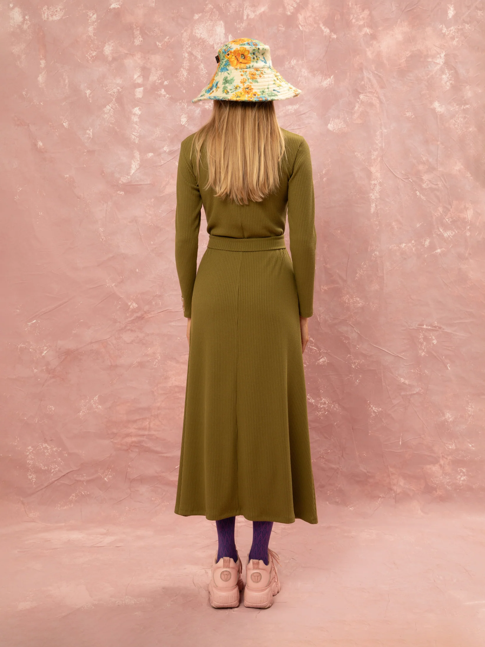 28% rayon / 69% polyester / 3% sp – round neckline – long sleeves – decorative woven label on the sleeve – fitted silhouette – same-fabric belt included – straight hem – mid-calf length – fits true to size, take your normal size – designed and produced in Greece