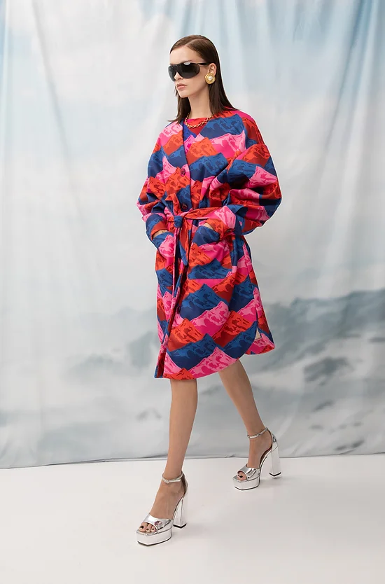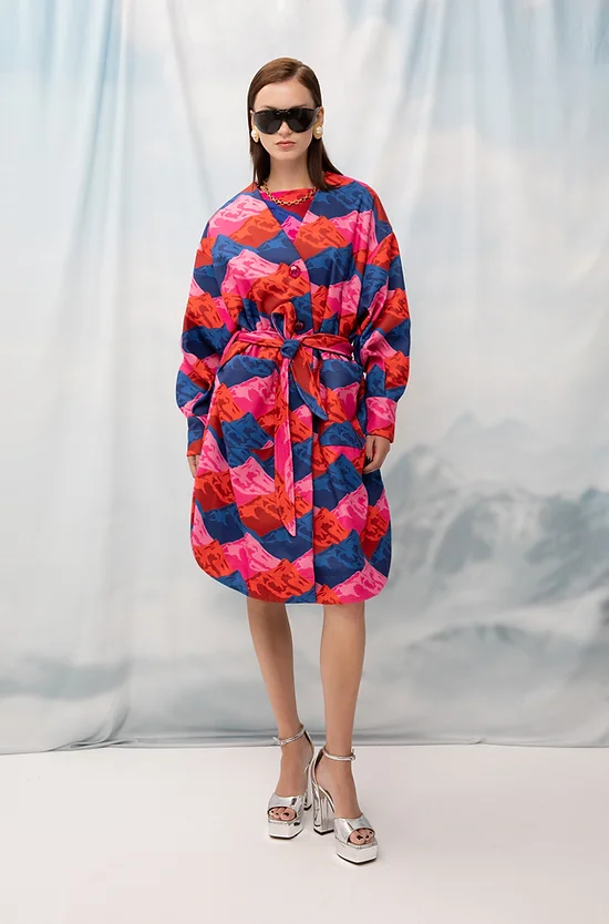 – 19% rayon / 81% ps – V-neck – front button fastening – long sleeves – buttoned cuffs – same-fabric belt included – two front patch pockets – mid-length – side slits – curved hem – fits true to size, take your normal size – designed and produced in Greece
