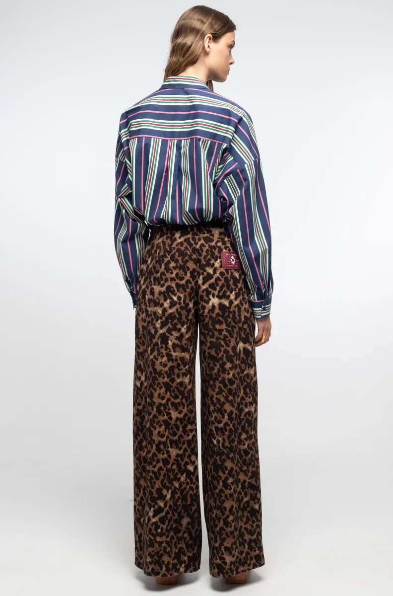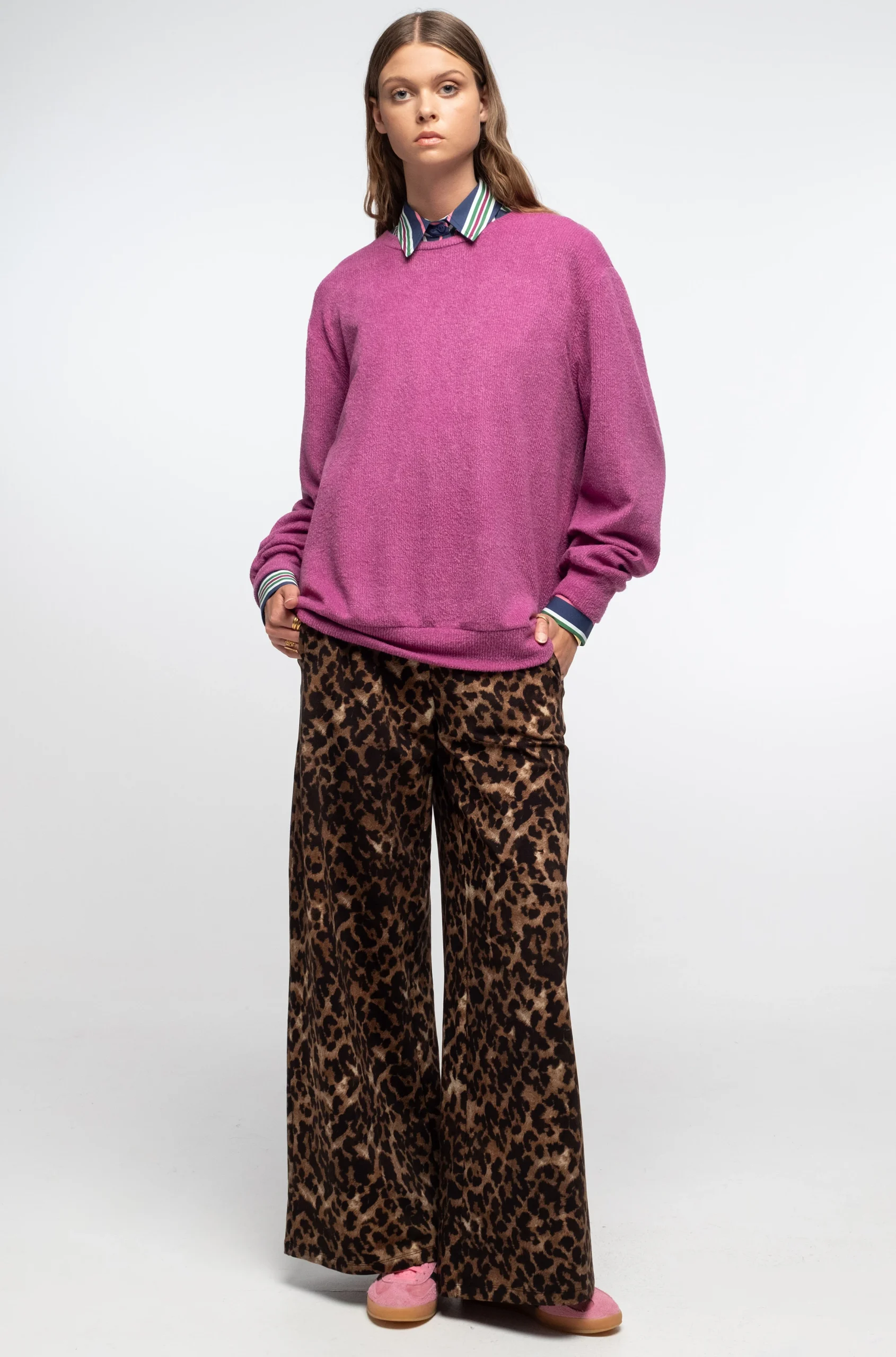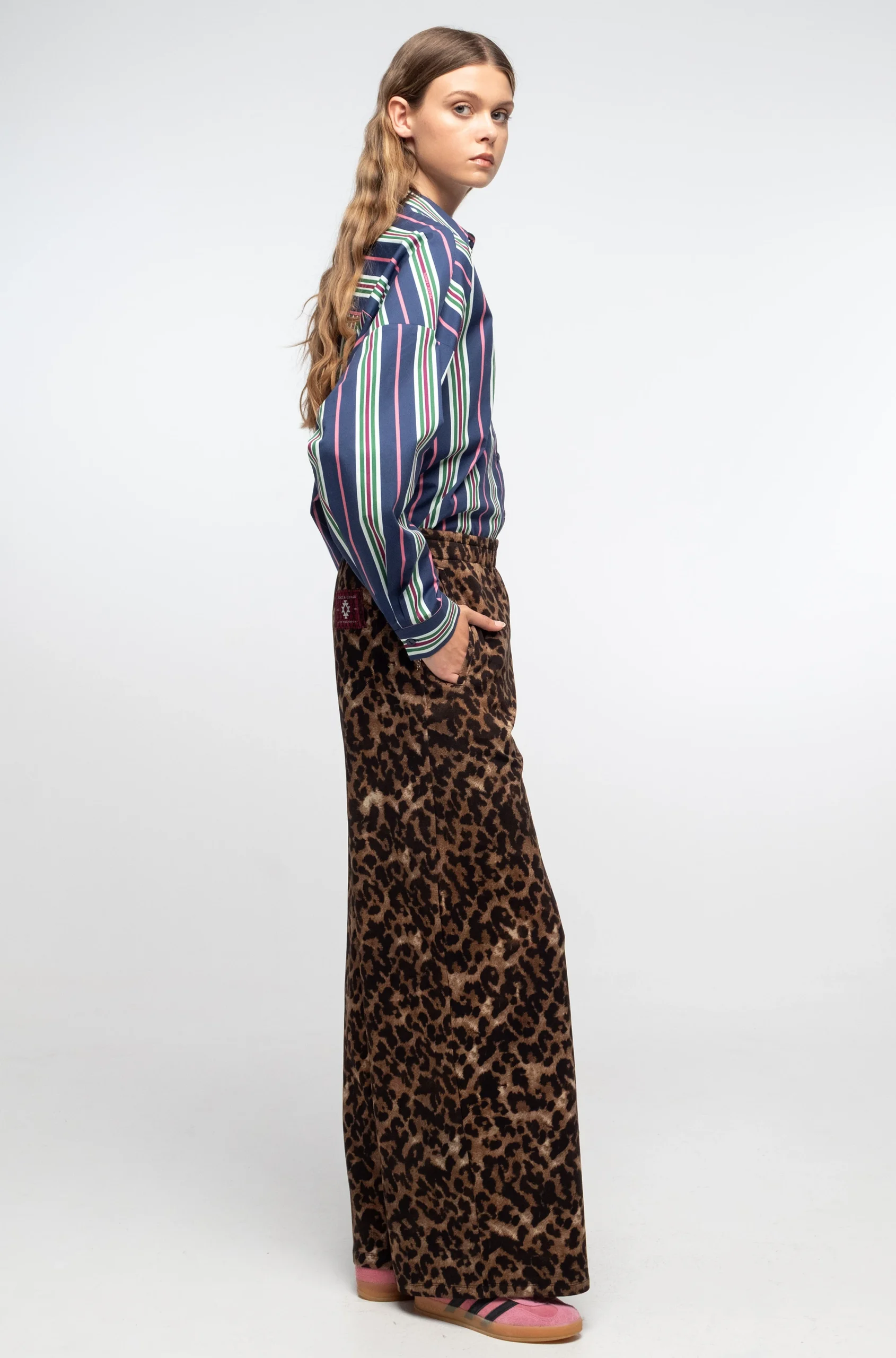 Our Rosette Pants bring comfort and style to everyday dressing. These cotton jersey pants take on an elevated streetwear vibe with an all-over print of rose-like leopard markings. With a special P+C woven label detail, these casual, loose-fitting pants can be used to layer colour, print and textures. Express personal style and wear with a Thistle Top in Purple and a Sonata Shirt in navy.