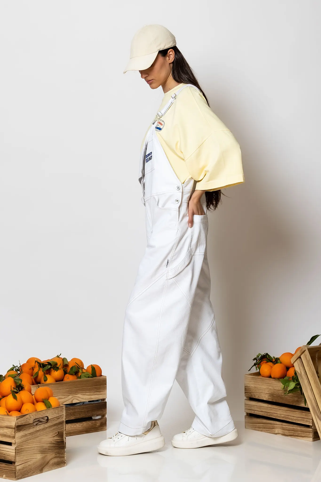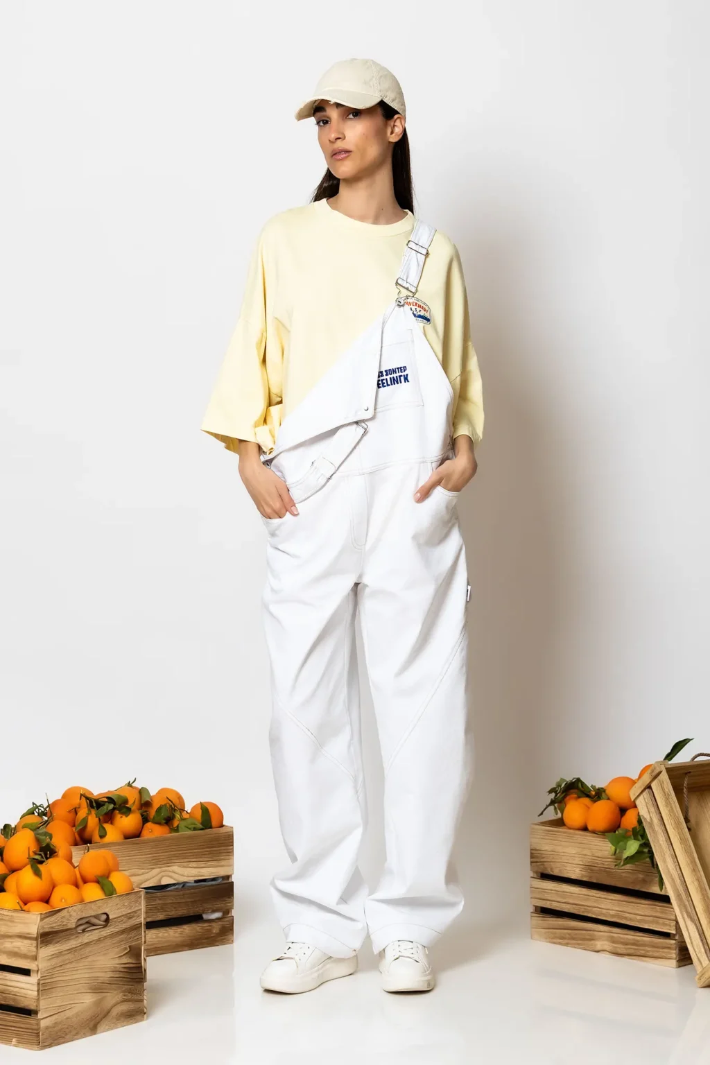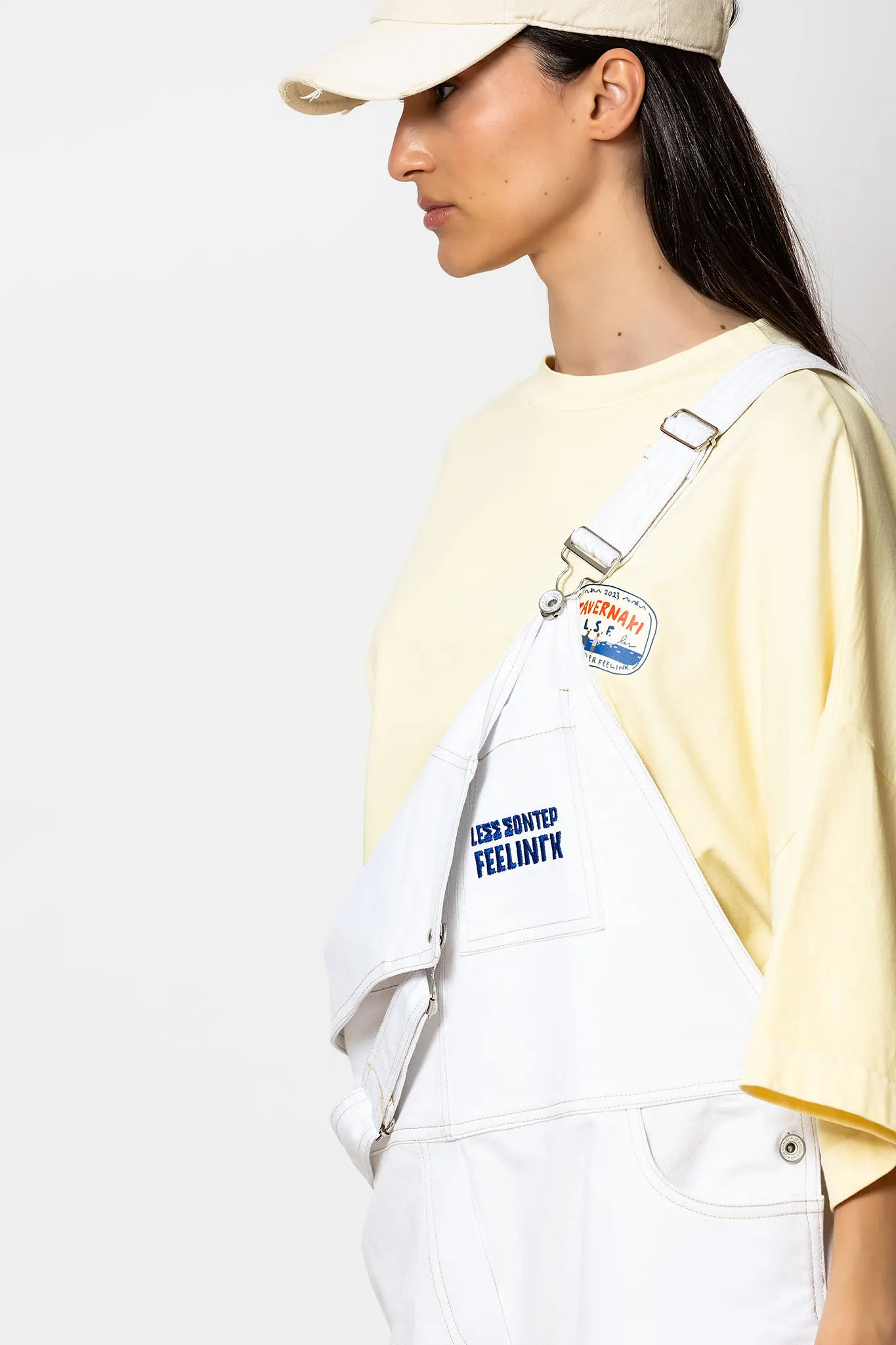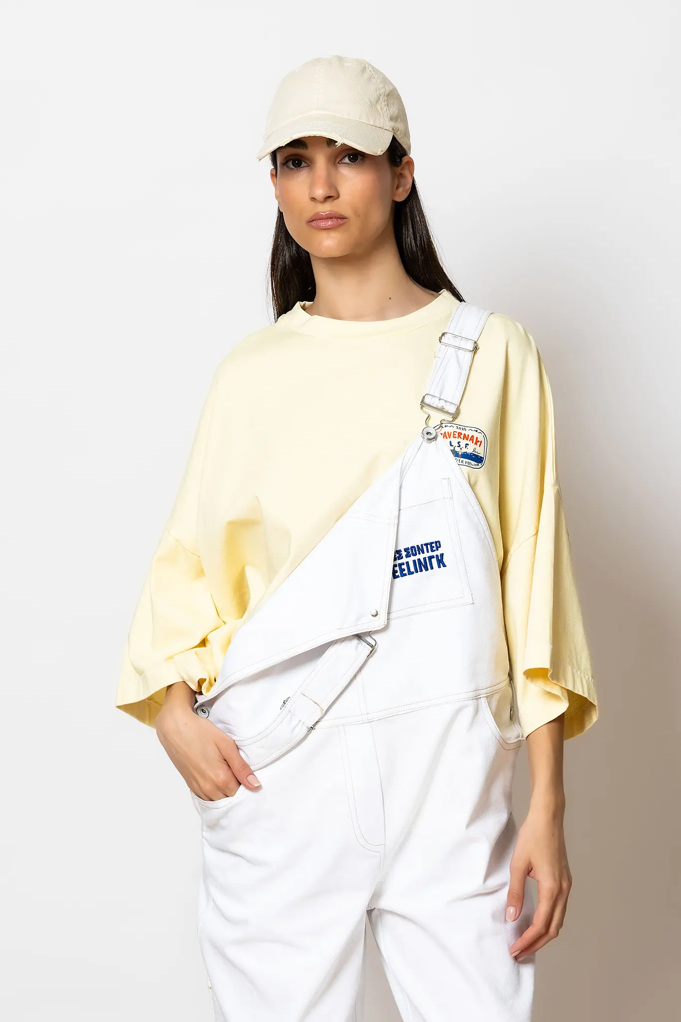 “Mastiha” Wide-leg denim cargo overalls